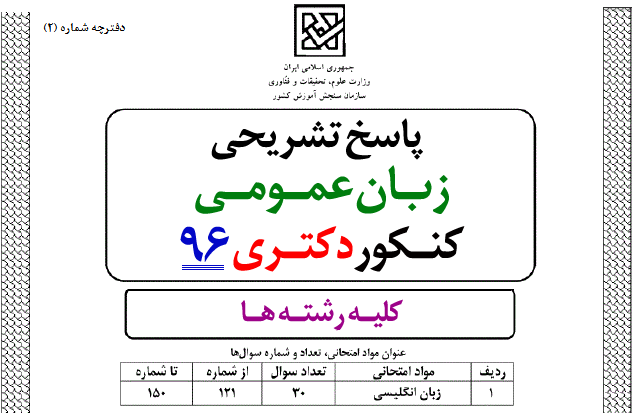 کلید اولیه سوالات زبان عمومی کنکور دکتری ۹۶ کلیه گروه ها در سایت سازمان سنجش قرار گرفت.